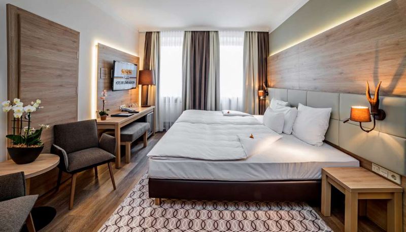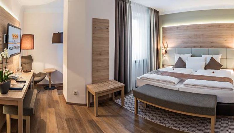 This 4-star hotel, renovated in 2016, is located at Munich Central Station. The pedestrian zone with the best shopping opportunities is less than a 5-minute walk away. We welcome you to the heart of Munich! The Oktoberfest is also within a 10-minute walk. Enjoy our bar and the courtyard terrace during the summer. The rooms are designed in a Bavarian-modern style. Soundproof doors and windows ensure a peaceful night's sleep. Our newly renovated rooms feature individual air conditioning, entertainment with LED TVs, and speakers in the bathroom. Please note that our standard rooms do not have their own air conditioning. You can enjoy free high-speed Wi-Fi. The elegant bathrooms offer exclusive toiletries as well as an XXL shower or bathtub.