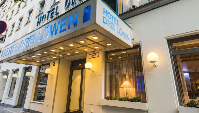 You leave the main railway station Munich at the main entrence and turn to the right. You cross one traffic light at the Bayerstr. You turn right in front of you the Schillerstr. starts. The Hotel Drei Löwen is located on the right hand side after 50 m.