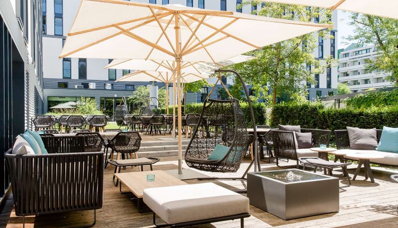 This city hotel is characterised by a pleasant and stylish atmosphere. The rooms feature the typical Motel-One design with a trendy and sophisticated look and extraordinary details. The lounge bar comes with cosy leather armchairs and a library and is at the same time a breakfast café. Here, you can enjoy your breakfast, tasty beer, snacks, and creative cocktails. The inner courtyard terrace has places for you to sit in the shade.