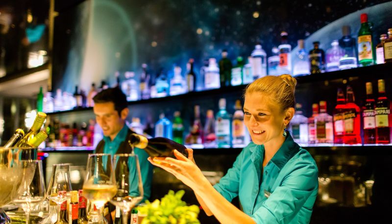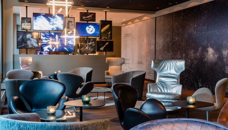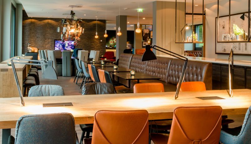 The One Lounge is lobby, cafeteria and bar in one. Here you find everything to make your stay more comfortable at Motel One: a lot of room and light, friendly service, appealing design, snug couches as well as always freshly brewed cappuccino, tasty snacks, assorted wine, drinks and nice music.